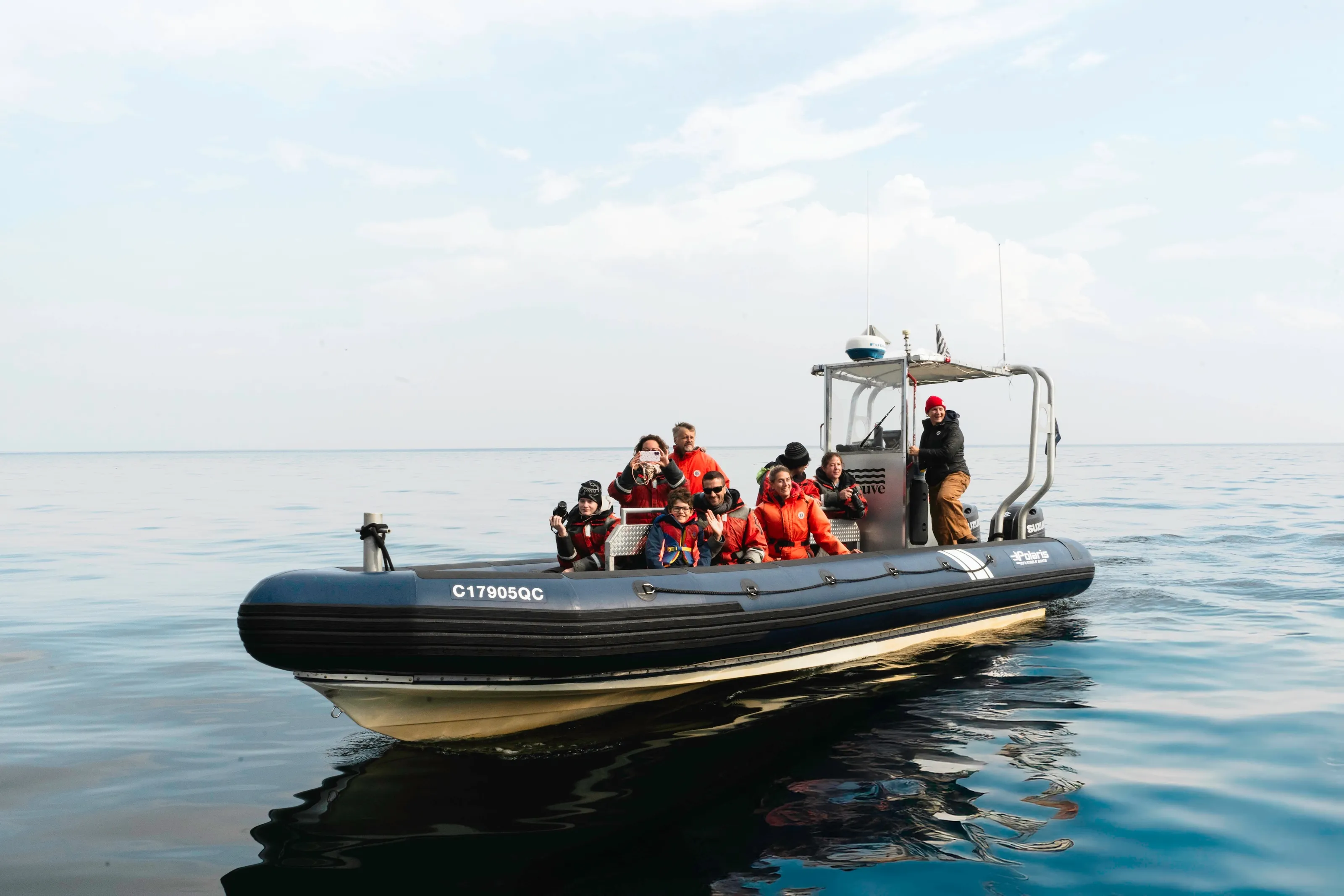 Sorties en zodiac en petits groupes de 12 pour observer les baleines et la faune marine, au rythme du fleuve et dans une approche respectueuse du milieu.