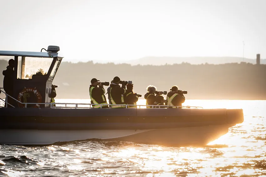 Sorties en zodiac en petits groupes de 12 pour observer les baleines et la faune marine, au rythme du fleuve et dans une approche respectueuse du milieu.