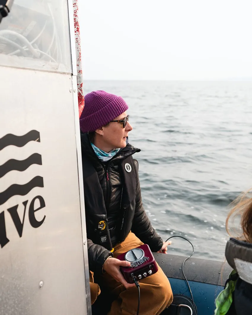 Un hydrophone (microphone sous-marin permettant d’entendre les sons marins) est toujours à bord de nos bateaux. Son utilisation dépend toutefois de conditions bien précises. L’hydrophone est très sensible à la pollution sonore, mais aussi à l’état du fleuve : une mer agitée, de fortes vagues ou des courants marqués peuvent réduire les chances d’écoute.